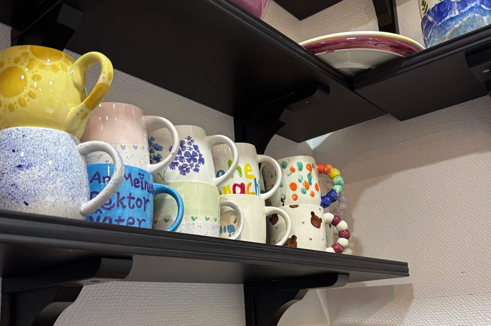 Du musst nichts extra bezahlen – alle Materialien und die Studiozeit sind bereits im Preis inbegriffen. Farben, Glasuren, Pinsel und die Nutzung unserer gemütlichen Räume stehen dir frei zur Verfügung.